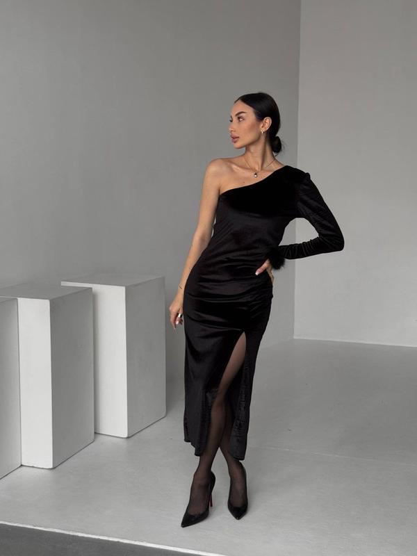 Сукня 🖤Модель: 846 /"1514 🖤Тканина: оксамит 🖤Розміри: 42-44, 46-48 🖤Кольори: чорний Ціна 770 грн 🖤Елегантне плаття з м'якого оксамиту із зручними кроєм на одне плече та виразним вирізом на нозі. Стримана довжина міді додає шарму🖤 Підкресліть свою жіночність та стиль в цьому неповторному вбранні🖤