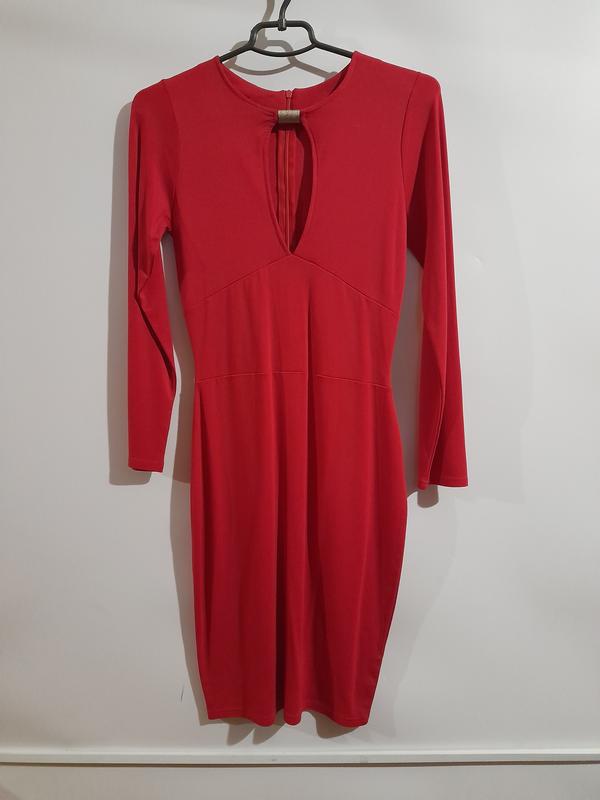 Красивое красное трикотажное платье по фигуре, не просвечивается, с длинным рукавом, с открытым вырезом сверху. Застегивается на спинке на длинную молнию. Платье в отличном состоянии, без дефектов. Размер: S/M Пог: 40 см., тягнеться. Пот: 33 см. Пос: приблизно 43 см. + Длина по спине: 96 см. Плечі: 34 см. Рукав: 60 см.