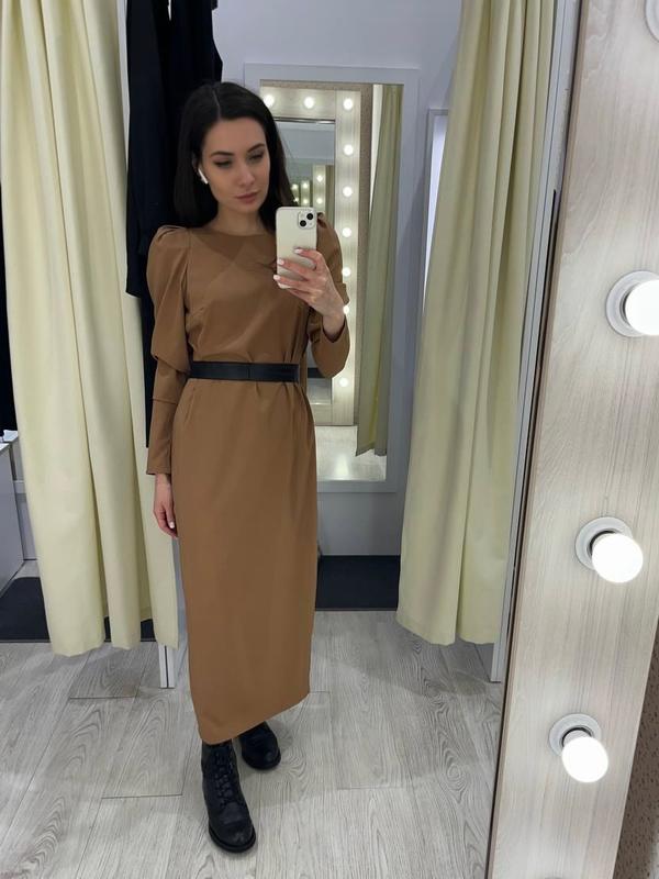 Дуже гарна базова сукня українського бренду Vovk з чудовим складом 95% віскоза та 5% еластан, який допомагає тканині менше замикатися. Лаконічний прямий силует дозволяє підігнати сукню під ваші потреби. Рукав ліхтарик додає шарму, якщо носити її саму по собі, а віскоза дозволяє комфортно носити її як перший шар хоч під светри хоч під піджак. Позаду на сукні розпірка без шліци і блискавка