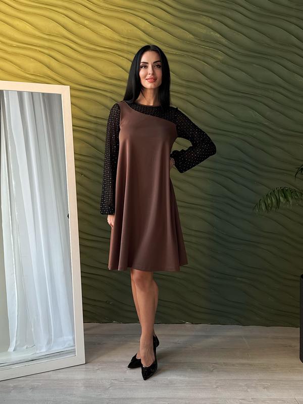 ‼️ТЕРМИН ОТПРАВКИ ~2-5 РАБОЧЫХ ДНЕЙ!!️ФОТО РЕАЛ ‼️ Вечернее платье с прозрачными рукавами: ✅️изящное сочетание двух разных материалов ✅️элегантная длина миди и прозрачные рукава с блестками 🌈Цвет: черный, марсала, шоколадный. Размер: 42-44, 46-48, 50-52, 54-56 Материал: креп дайвинг, сетка Арт:8019