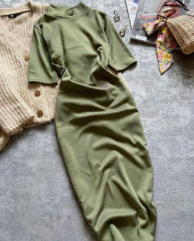 Базовая миди-платье от Boohoo цвета оливки в идеальном состоянии, приятная ткань Размер 12 Дл.107 см ПОГ 42-53 см ПОТ 33-40 см П0Б 42-52 см Тянется хорошо