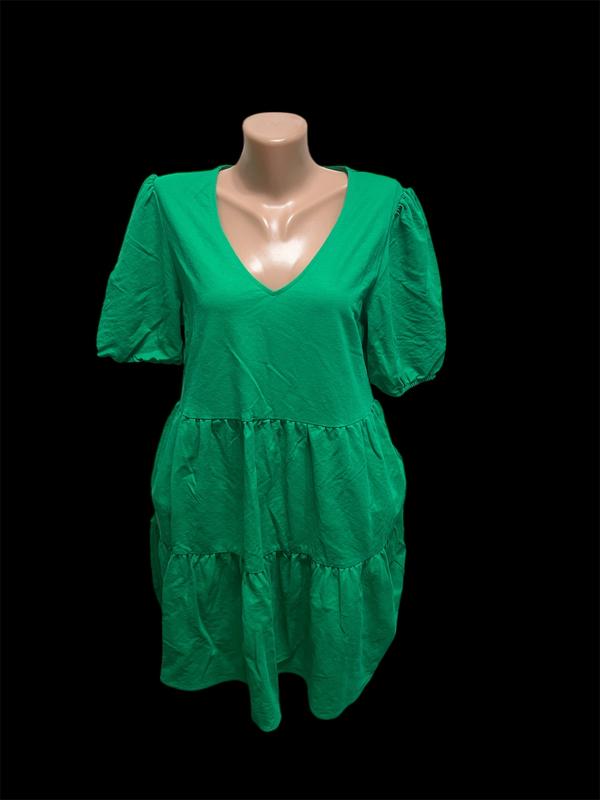 В ідеальному стані зелене платтячко. Модель вільного крою. Розмір М. Заміри: Напів обʼєм грудей 47 см Напів об’єм талії 47 см Довжина 90 см