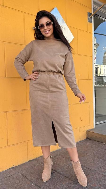 Замшева сукня міді