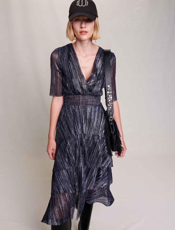 Вишукана сукня міді довжини від бренду Maje. Підійде для свята. Дуже гарно під жакет. Без застібки, талія трохи завищена, регулюється резинкою. Красиві волани по спідниці. Розмір 36( підійде на XS/S.). Стан нової речі