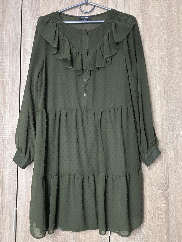 Зелена міді сукня primark в сіточку з підкладкою. Сама сукня зроблена з сітки з текстурними крапочками. За рахунок підкладки не просвічує.