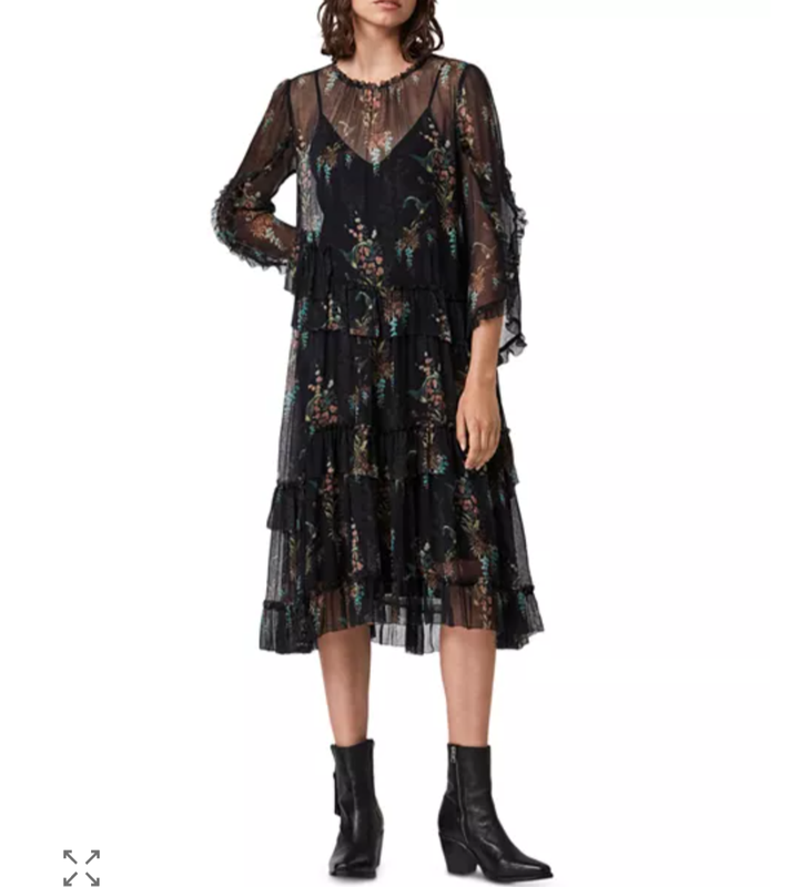 Брендовое, лёгкое, летящее, прозрачное, свободное платье миди в цветочный принт allsaints