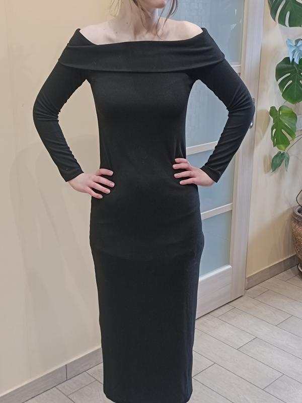 Идеальное платье для стройной девушки / женщины на вечер. изысканно смотрится с обнаженными плечами, подчеркивает все изгибы фигуры. насыщено черный цвет + отлично тянется. была одета два раза длина 120 грудь 38 (до 48 тянется)