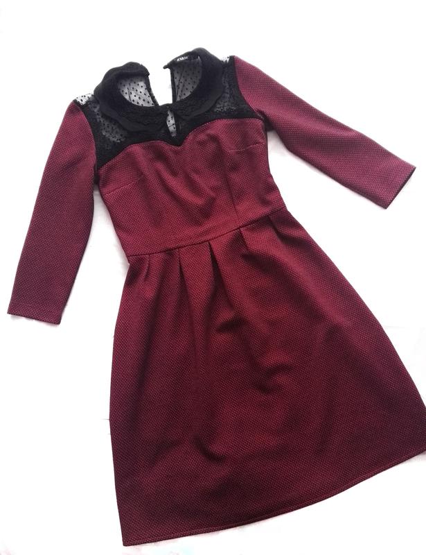 Чудове плаття кольору марсала, довжина - до коліна, рукав - три четверті, збоку застібається на замочок, матеріал плотний. Одягалось 2 рази, стан ідеальний, недоліків немає.