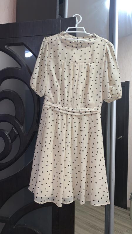 Сукня нижче коліна бежева в чорний гоп за підкладом
