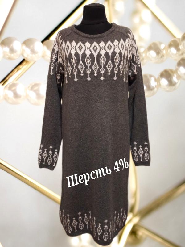 Брендовое вязаное теплое платье миди с принтом большого размера шерсть коттон вискоза