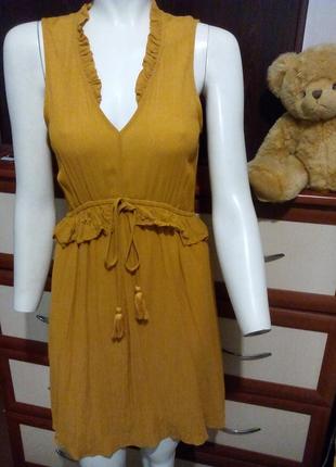 Платье горчичного цвета.Пошито из непрозрачного жатого шифона.(жатая вискоза) Внизу есть подкладка.Подойдет на с-м.Длина чуть выше колена. Длина изделия спереди 84см сзади 94см Пог 47см Пот 36см,и так как она на резинке,то тянется до 50см В плечах 29см Высота проймы 26см