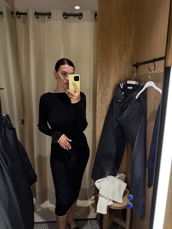 Сукня Манго чорного кольору, тягнеться сильно. Розмір М. Мій ріст 180, довжину бачите самі