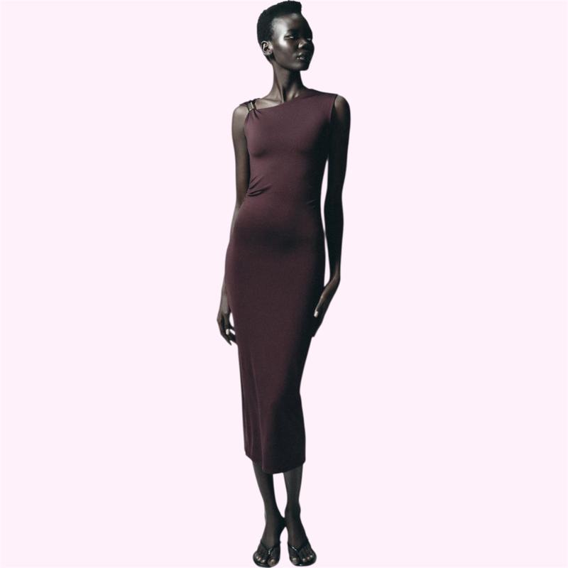 Жіноча сукня міді зібрана в районі талії в бордовому кольорі від Zara. Нова, сток. Розмір М, але дивіться по замірам, сукня дуже добре тягнеться. Є нюанс: була зшита в районі плеча, прикраса відсутня. Склад: поліамід 93%, еластан 7% Довжина 125 см ПОГ 37 см, тягнеться на 10+ см ПОТ 32 см, тягнеться на 10+ см ПОС 38 см, тягнеться на 10+ см Переходьте та підписуйтесь на сторінку, ще є жіночі речі за доступними цінами🌸 Підписникам знижка😉
