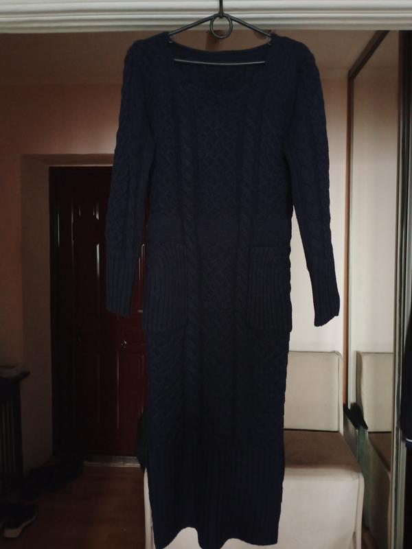 Теплое, удобное, платье, шерсть мягкая не колючая, цвет темно синий.