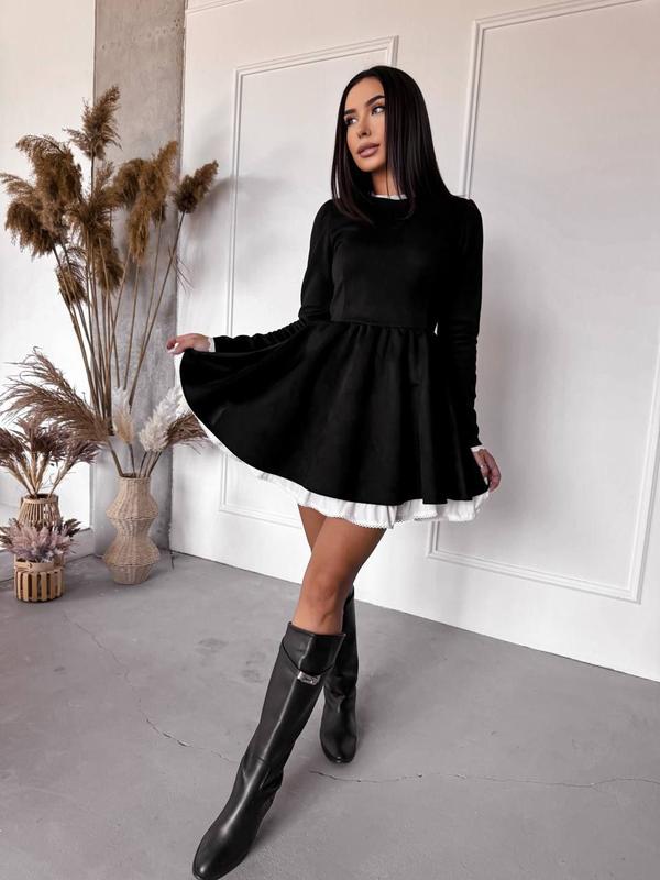 Стильное и романтичное, платье, с приданием новых цветов, оброблена французским мережевом, застегивается молнией на спинке, юбка убранная, сорнцеклеш, + съемная белая юбка с сетевым 🩷💙 Цена 999 грн Арт. 10495 mag Ткань: замш на дайвинге (тянется) с приданием белого коттона (хлопка), Ткань: Турция Цвет: черный, бордо, изумруд Размер: с-м(42-44) Об.. гр. 84-90 см. Об.талии 62-68 см. Длина 83 см. Размер: м-л(44-46) Об. гр. до 90-96 см. Об.талию до 68-72 см. Длина 84 см.