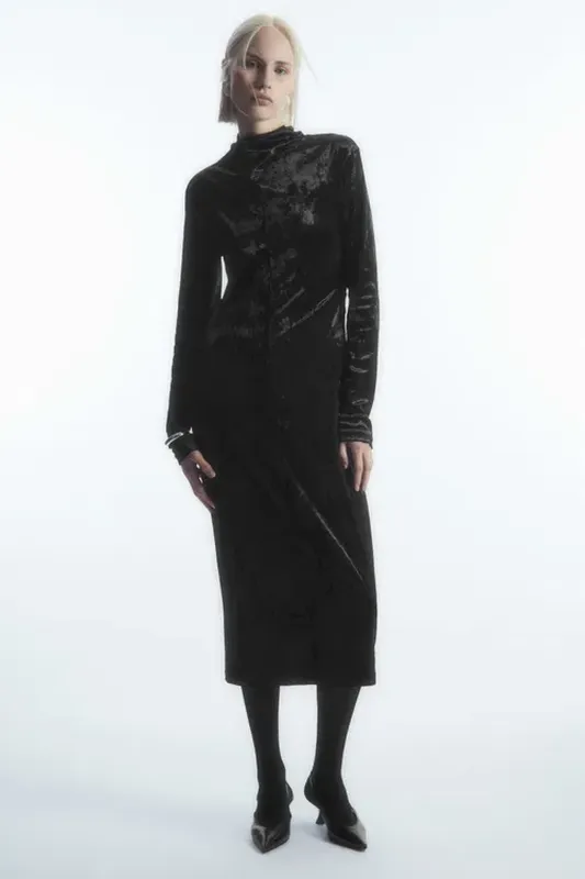 Встретите сезон вечеринок с этим платьем из осенне-зимней коллекции. Она выполнена в классическом черном оттенке из мягкого переработанного бархата с легким эластичным эффектом и хорошо облегает фигуру. Высокий воротник создает мягкие складки, подчеркивающие силуэт, а чрезвычайно длинные рукава легко двигаются на манжетах. Соберите волосы, чтобы подчеркнуть открытую спину. 92% переработанный полиэстер, 8% эластан Номер продукту: 1205117001 S CN 165/88А Плечи 46 см Рукав 70 см ПОГ44 см ПОБ 48 см Длина 126 см