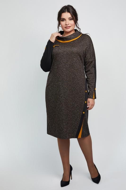 Платье полуприлегающего силуэта выполнено из плотного трикотажа. Растяжимость ткани низкая. По центральному шву спинки виконана шліца. Справа по полке - имитация кармана лесточка. По низу полки слева - имитация планки на пуговицу. Воротник хомут мягко облегает шею - и это еще один плюс, который будет оценен в холодную погоду. Конструктивные особенности и цвет модели предполагают большой выбор обуви, аксессуаров, верхней одежды. 50 р-р: ОГ - 102см, ОТ - 102см, ОБ - 112см; ширина рукава - 37см; ширина манжети - 22см; 52 р-р: ОГ - 106см, ОТ - 106см, ОБ - 116см; ширина рукава - 40см; ширина манжети - 22см; 54 р-р: ОГ - 110см, ОТ - 110см, ОБ - 120см; ширина рукава - 41см; ширина манжети - 23см; 56 р-р: ОГ - 114см, ОТ - 114см, ОБ - 124см; ширина рукава - 43см; ширина манжети - 24см; 58 р-р: ОГ - 118см, ОТ - 118см, ОБ - 130см; ширина рукава - 44см; ширина манжети - 25см; 60 р-р: ОГ - 122см, ОТ - 122см, ОБ - 134см; ширина рукава - 46см; ширина манжети - 25см;