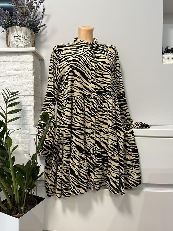 Сукня-сорочка віскозна В анімалістичному принт Від Stradivarius Р.хл Довжина 92 Пог54 Талія вільно