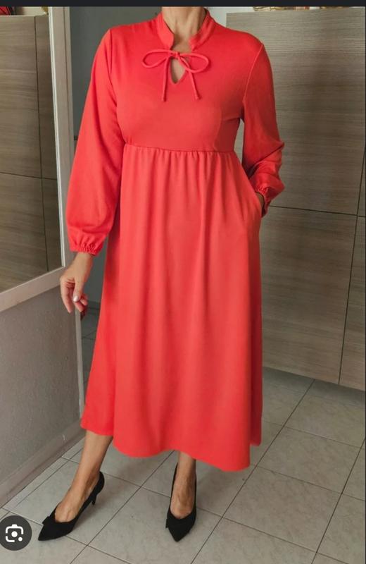 Платье праздничное миди платье красное хл красивый рукав