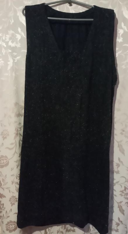 черное блестящее платье без рукавов с V-образным вырезом. Она имеет прямой или слегка A-образный крой, который подходит для разнообразных фигур. Такие платья часто изготавливаются из тканей с добавлением люрекса, софта с металлической нитью или имеют блестящее напыление или пайетки, что создает эффект мерцания и делает их популярным выбором для вечернего или праздничного наряда.
