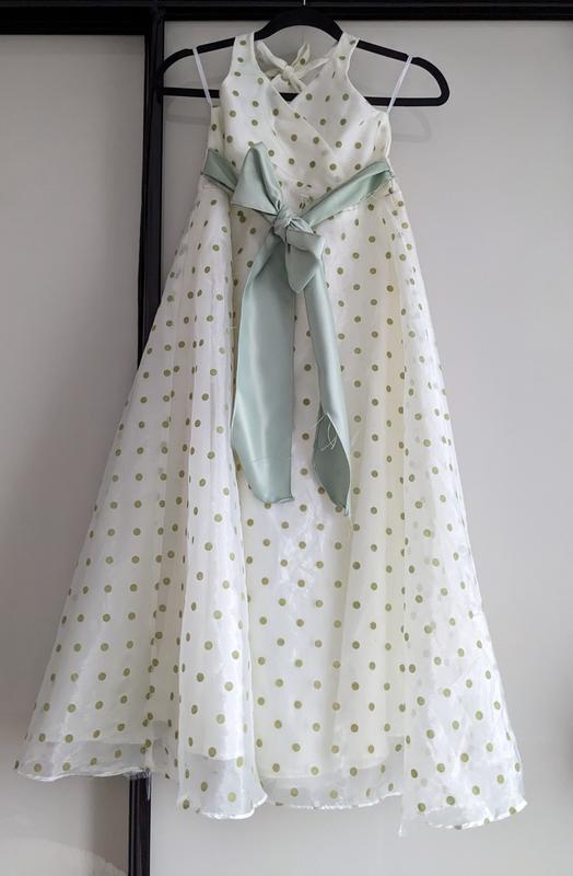 Платье- сарафан легкое, нежное белое в зеленый горошек, даже красивое. Kiki&koko Размер xxs-s Смотрите по замерам Пот 35 Длина (из груди) 94 Маленький нюанс -треба подшить край отрубился.