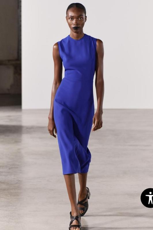 Элегантное синее платье-футляр средней длины от бренда ZARA. Эта модель без рукавов имеет высокий вырез горловины, четкие линии кроя и застежку-молнию на спине, что создает утонченный и минималистичный силуэт и выглядит как универсальный вариант, который подойдет как для деловых встреч, так и для особых случаев. Замеры: пог-52 пот -42 поб -58 длина -125 указан размер -XL