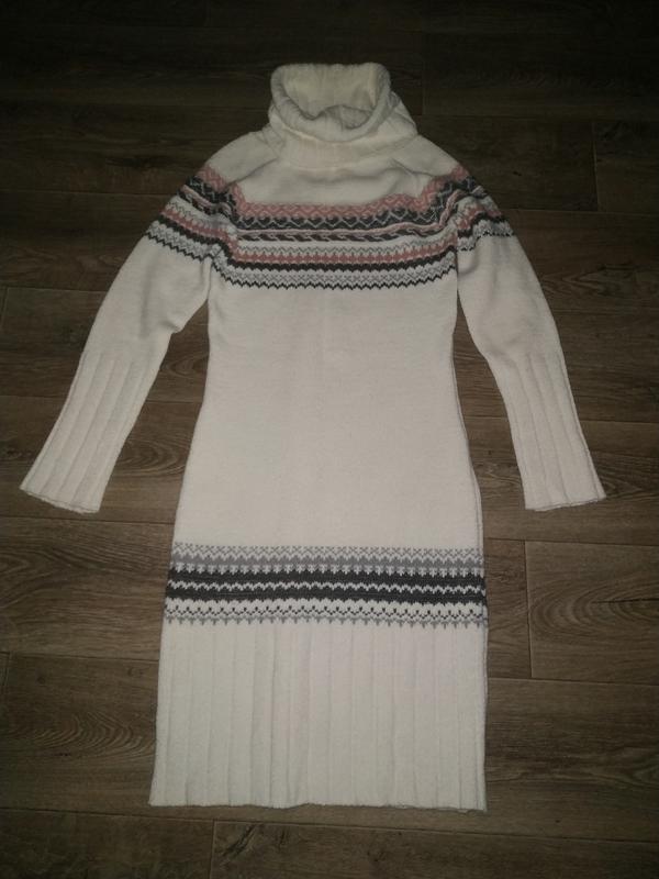 Невероятно красивое и теплое платье. Красивый узор. Прекрасная вещь на зиму. Длина 110, ширина 40, бедра 45. Теплая и мягкая. Отлично тянется. Не просвечивает.