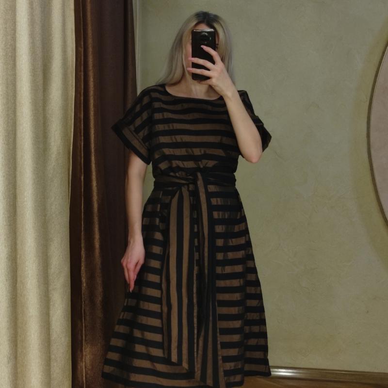 Платье миди Размер от М до XXL - платье идет свободно, регулируется поясом, пояс пришит по бокам ПОГ - свободно, в разложенном виде 60, ПОТ - 63, ПОБ - 66. Длина 110. 45% полиэстер, 26% коттон, 25% вискоза, 3% другие нити Состояние новой ✨ Неповторимое платье в элегантную полоску, которая не оставит вас незамеченной. Изысканный крой и акцентный пояс изящно подчеркивают талию. Модель выглядит стильно и эффектно. ✨ Платье, придающее уверенности и особенного шарма.