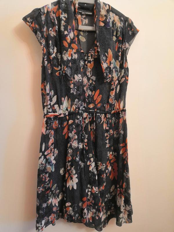 Размер 12 (бирка), длина 100-108, пог 50, пот до 47, бедра 68 (сборки), плечи 37, плечо 11, рукав 7, без подкладки, ткань прозрачная