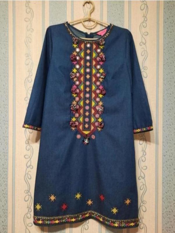 Стильное платье английского бренда с потрясающей вышивкой. Длина-92, пог-46, поб-50. По бокам карманы, на спинке молния.