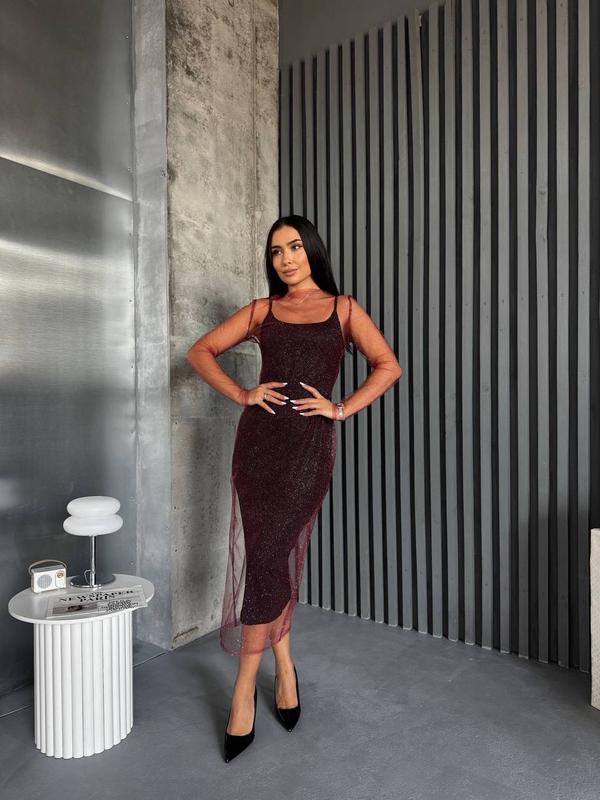 Сукня🥰 Мод: 1459-216 Розмір:42-44,46-48 Колір: чорний-бордо,червоний-червоний Тканина: віскоза та сітка блискітка Ціна- 769 грн🔥