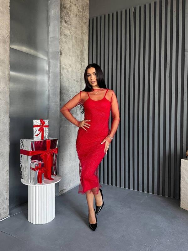 Сукня🥰 Мод: 1459-216 Розмір:42-44,46-48 Колір: чорний-бордо,червоний-червоний Тканина: віскоза та сітка блискітка Ціна- 769 грн🔥