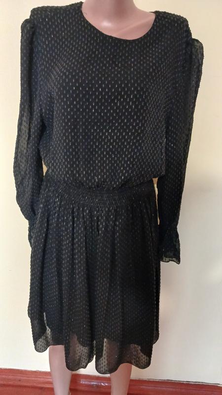 Красивое платье, ткань с золотой нитью.По замерам плечи 40,пояс 38, длина 100,рукав 62.