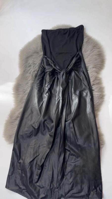 Стильне плаття в чорному кольорі. Розмір М. Довжина 112см., ширина - тягнеться в талії та грудях. Склад - 95% поліестер, 5% еластан.