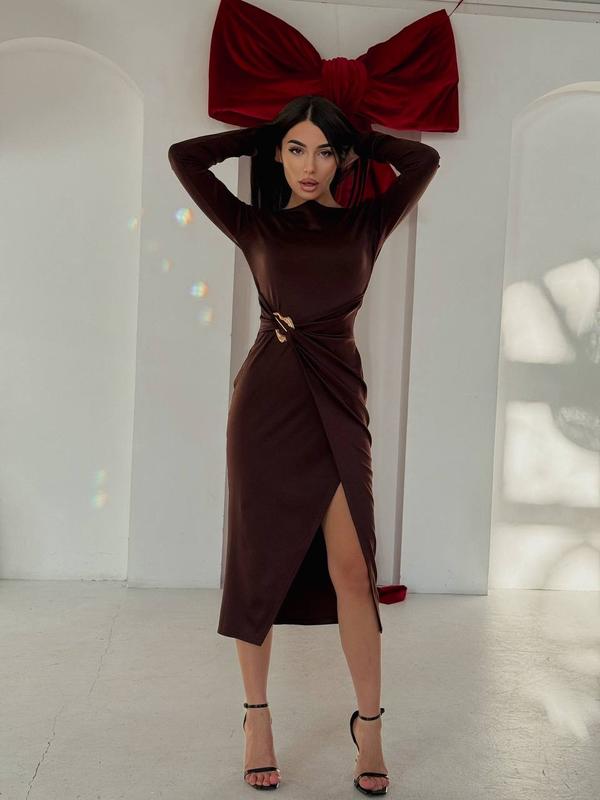 Модель 5675 Жіноча сукня з бляшкою Тканина мікро дайвінг високої якості ( приємний на дотик та тягнеться) Розмірний ряд S,M,L,XL Кольори чорний, шоколад та червоний Декор як на фото , дорога золота металева бляшка, дуже гарно виглядає Стильна та дуже гарна модель Супер якість