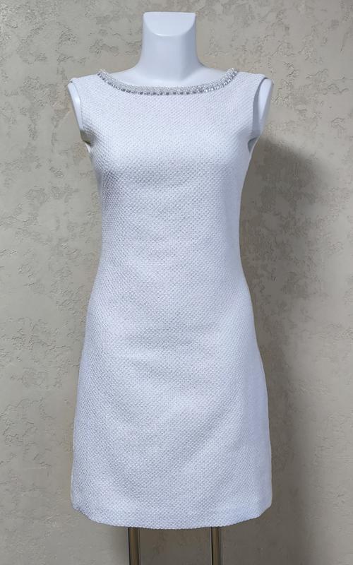 Платье без рукавов Ted Baker, с перлами в металлических букле. Модель идет на свой размер, плотно прилегает к телу, имеет круглую горловину и V-образный вырез с застежкой-молния сзади, без рукавов, на подкладке. 💫 Состояние: идеальный 💫 Размер: 1 💫Состав: 20% хлопок, 77% полиэстер, 2% металлизированное волокно, 2% полиамид 💫 Замеры: