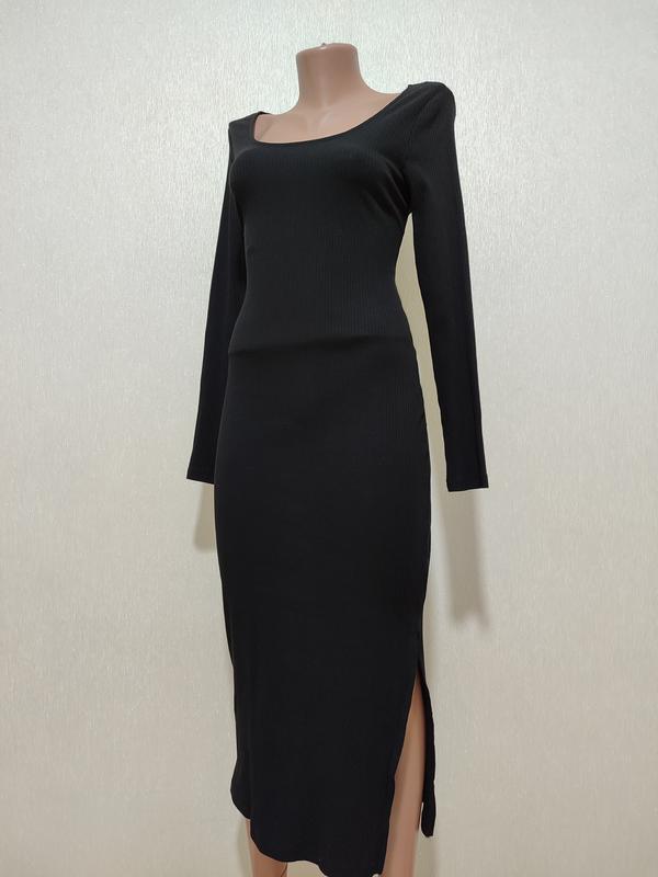 Секонд высокого класса, стильные и качественные вещи известных брендов. Стильное платье с разрезом сбоку, без застежки, приятное качество, рубчик, стрейч. Заміри на фото.