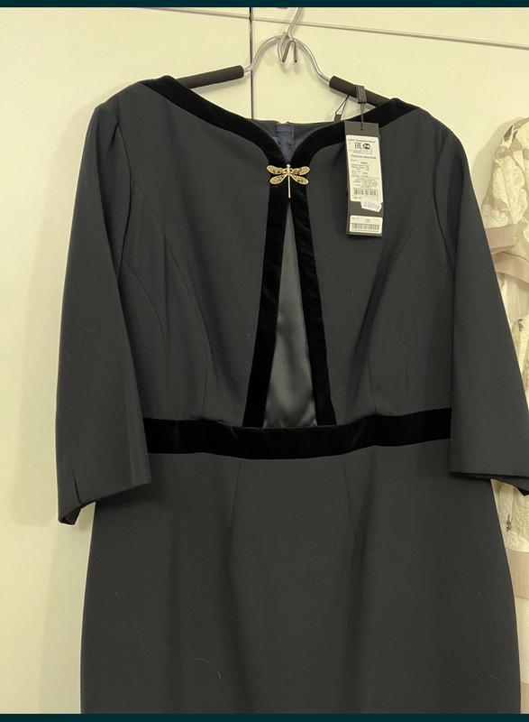 Стильна та жіночна сукня класичного силуету. Лаконічний дизайн із вишуканими акцентами робить її ідеальним вибором для особливих подій, офіційних заходів або вечірнього виходу. 🔹 Щільна якісна тканина, добре тримає форму є підклад 🔹 Оксамитові вставки на горловині та талії — візуально підкреслюють фігуру 🔹 Декоративна застібка-брошка у вигляді стрекози — стильний акцент 🔹 Рукав 3/4 🔹 Застібка на блискавку ззаду 🔹 Колір: темно-синій