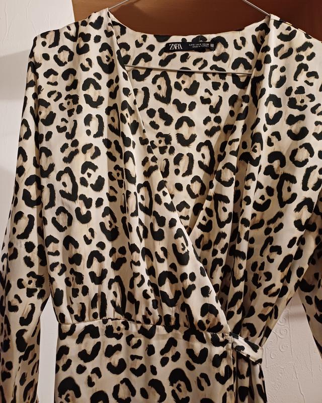 Платье Zara в леопардовый принт, на запах, размер S. Из приятного искусственного шелка. Длина 121 см, ширина в талии 37 см, рукав 3/4 - 45 см. В отличном состоянии.