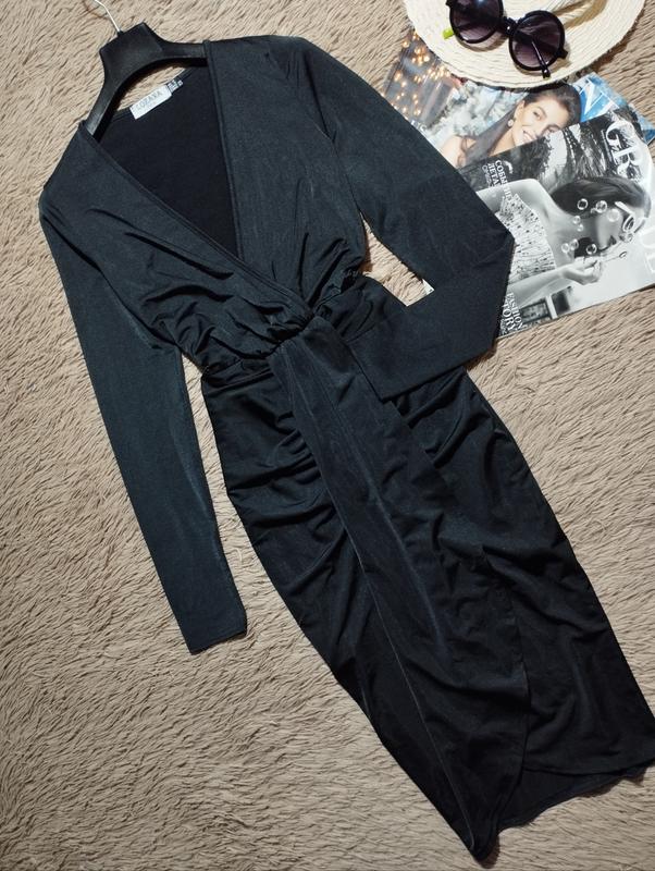 В идеальном состоянии. Красивое платье миди по фигуре. Ткань легкая, тянется.На юбке подкладка. Размер 8/36/S, но смотрите по замерам Замеры (полуобхват): Грудь 38 (тянется до 45) Талия 30 (тянется до 35) Рукав 60 Бедра 39 (тянется до 45) Длина от плеча спереди 86/сзади 100
