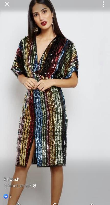 Новое без бумажной бирки, безложений Платье женское праздничное, сияющая,верх на запах, спереди разрез, ткань сетка на подкладке, размер указан L, замеры на фото