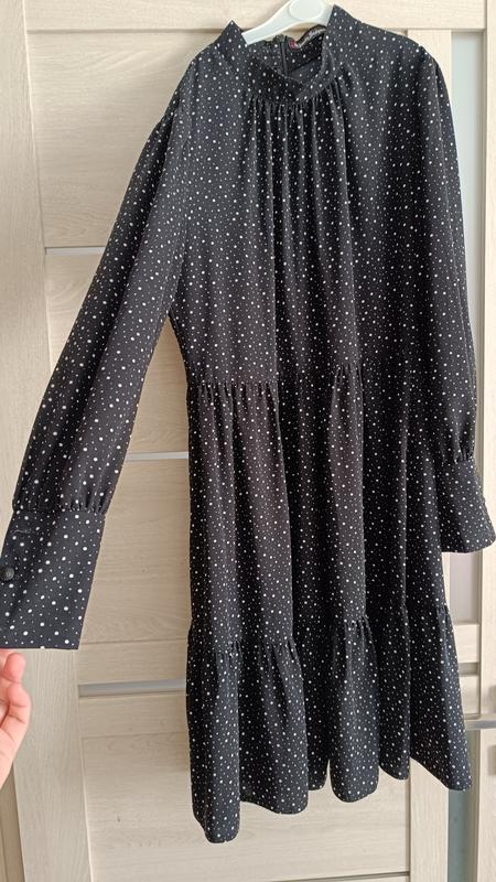 Сукня чорна в горошок, в розмірі L. Дуже гарний силует, приховує бочки.