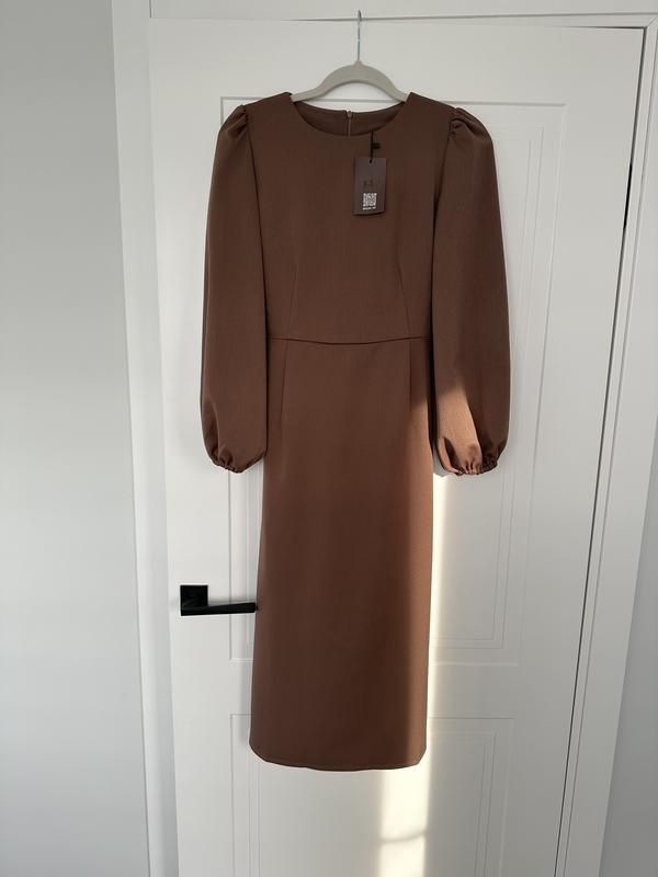Продам абсолютно нову сукню українського виробництва Melnykkshop в красивому шоколадному кольорі 🤎 Виконана дуже якісно, люксова костюмна тканина та рівні шви. Красиво лягає по фігурі Розмір на бірці вказаний xs, але може бути й s Заміри від виробника (вказані рекомендовані параметри тіла): ог - 82-85, от - 62-69, об - 89-94 Довжина сукні - 120 см Довжина розрізу - 22 см Віддам значно дешевше, аніж купувалася Причина продажу: не підійшов розмір
