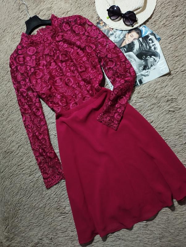 Шикарное платье миди с вышивкой и юбкой солнце клеш/платье