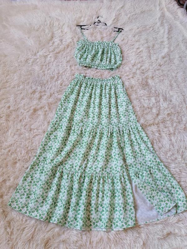 дивитися дні костюми виглядає як сукня в квітковий принт з розрізом на ніжці