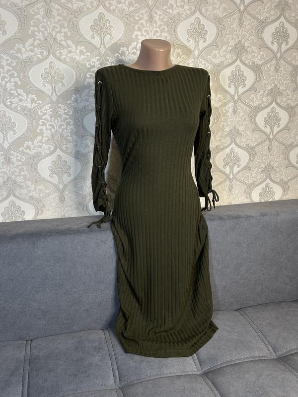 Сукня жіноча primark. силуетна обтягуюча сукня міді в рубчик хакі.