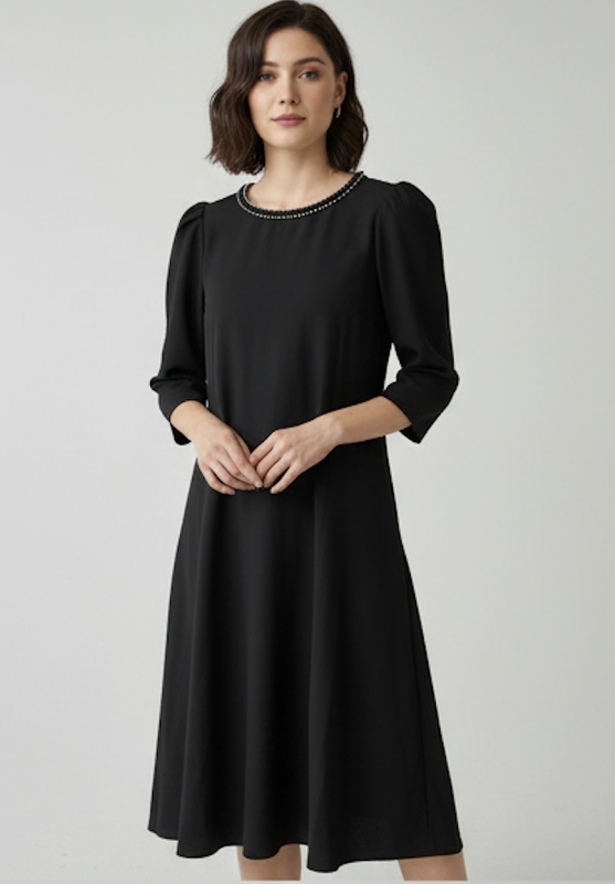 Изысканное черное платье миди с жемчужной отделкой: элегантность в каждой линии