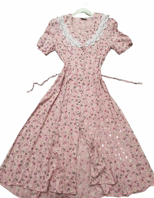 Розовое пудровое платье на пуговицах в стиле ретро винтаж