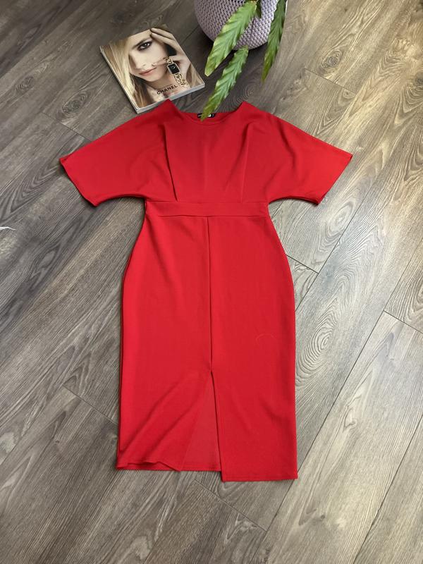 Стильна жіноча сукня і яскраво червоному кольорі, без застібок та розрізом попереду