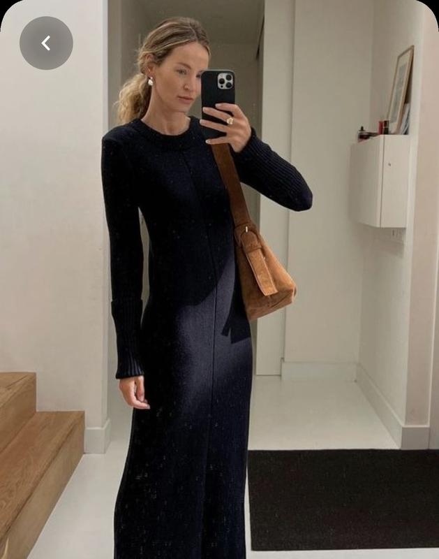 Темно-синее платье трикотаж рубчик базовый длинный рукав макси меди